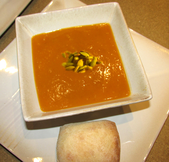 At this point you can serve and garnish with croutons, crispy sage, roasted pumpkin seeds or pumpkin oil. If you are not eating right away transfer to a crock pot to keep warm.