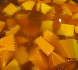 - Transfer the squash to a large pot: Add the stock to the pot and bring to a gentle boil. Add the squash chunks and simmer until fork tender.