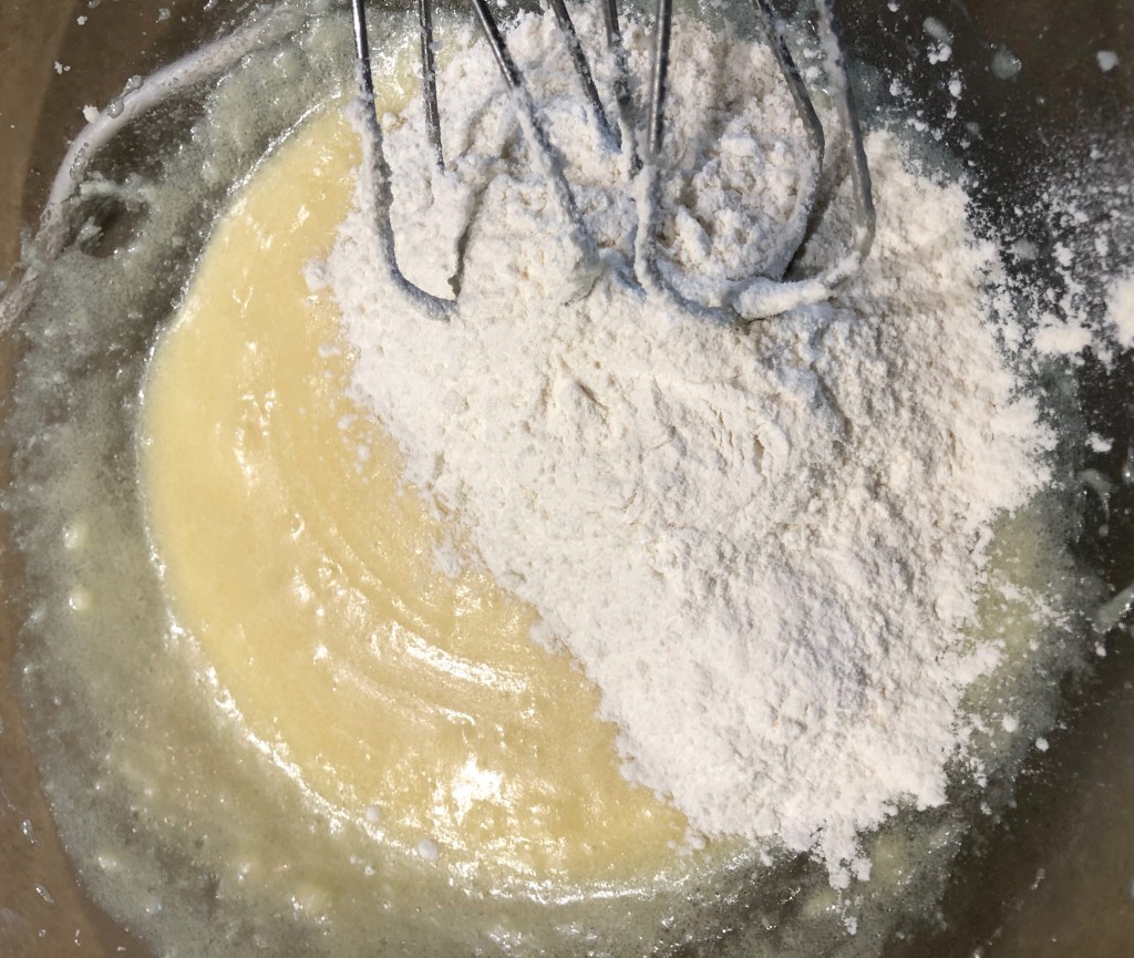 Heat oven to 375°F. Butter a 9-inch round baking pan (with at least 2″ sides) and dust it lightly with flour.