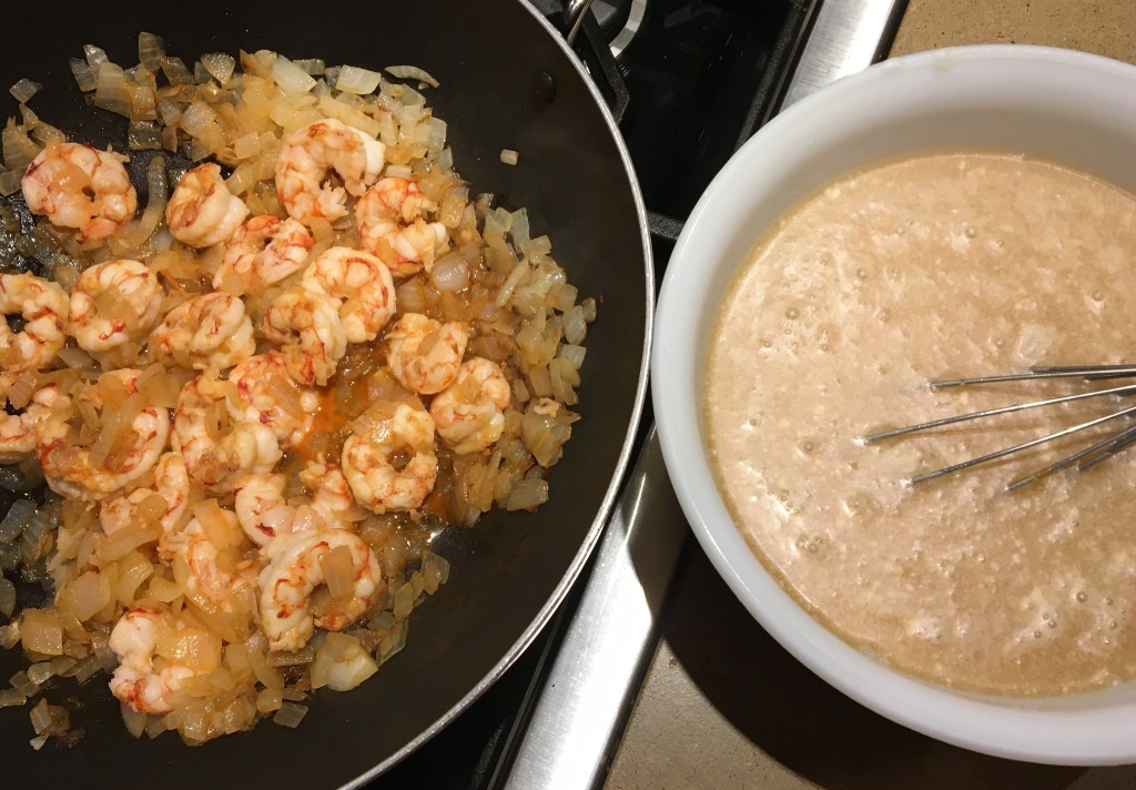 - Melt butter in a large stockpot or Dutch oven over medium high heat. Add shrimp, salt and pepper, to taste. Cook, stirring occasionally, until pink, about 2-3 minutes; set aside.