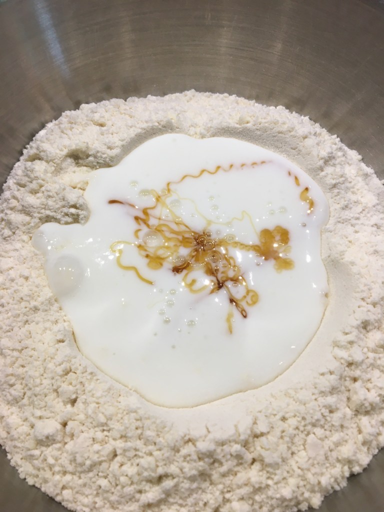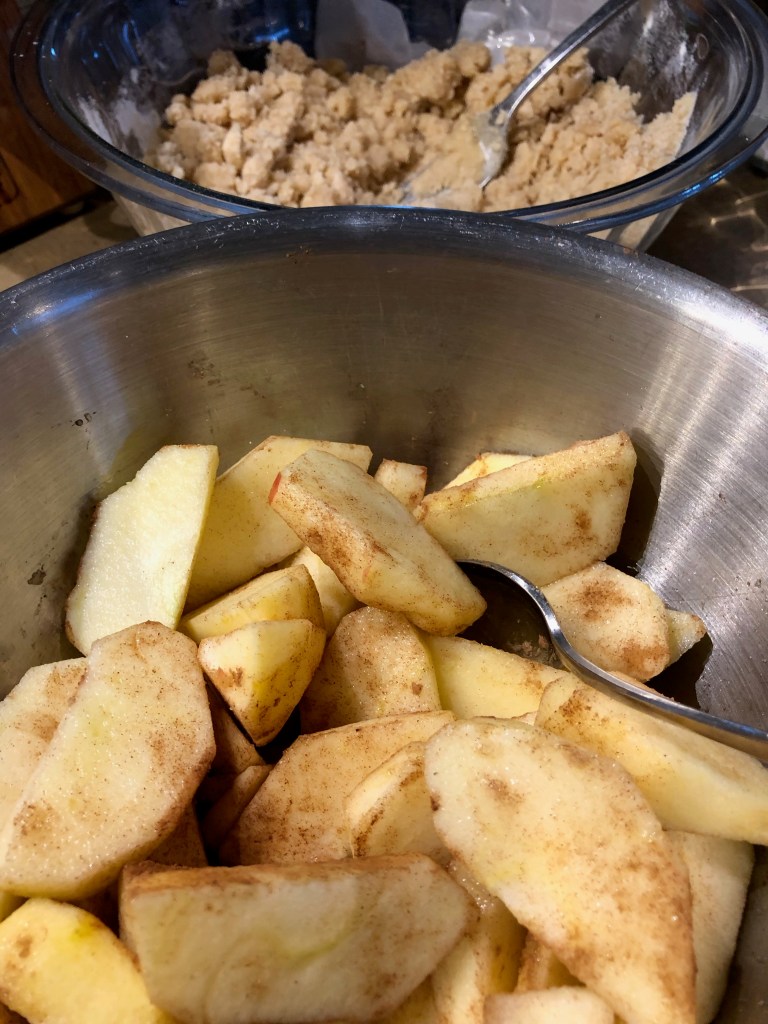 - Mix the flour, rolled oats, sugar, cinnamon, salt well in a medium bowl. Then add the melted butter and stir with a spoon or spatula.