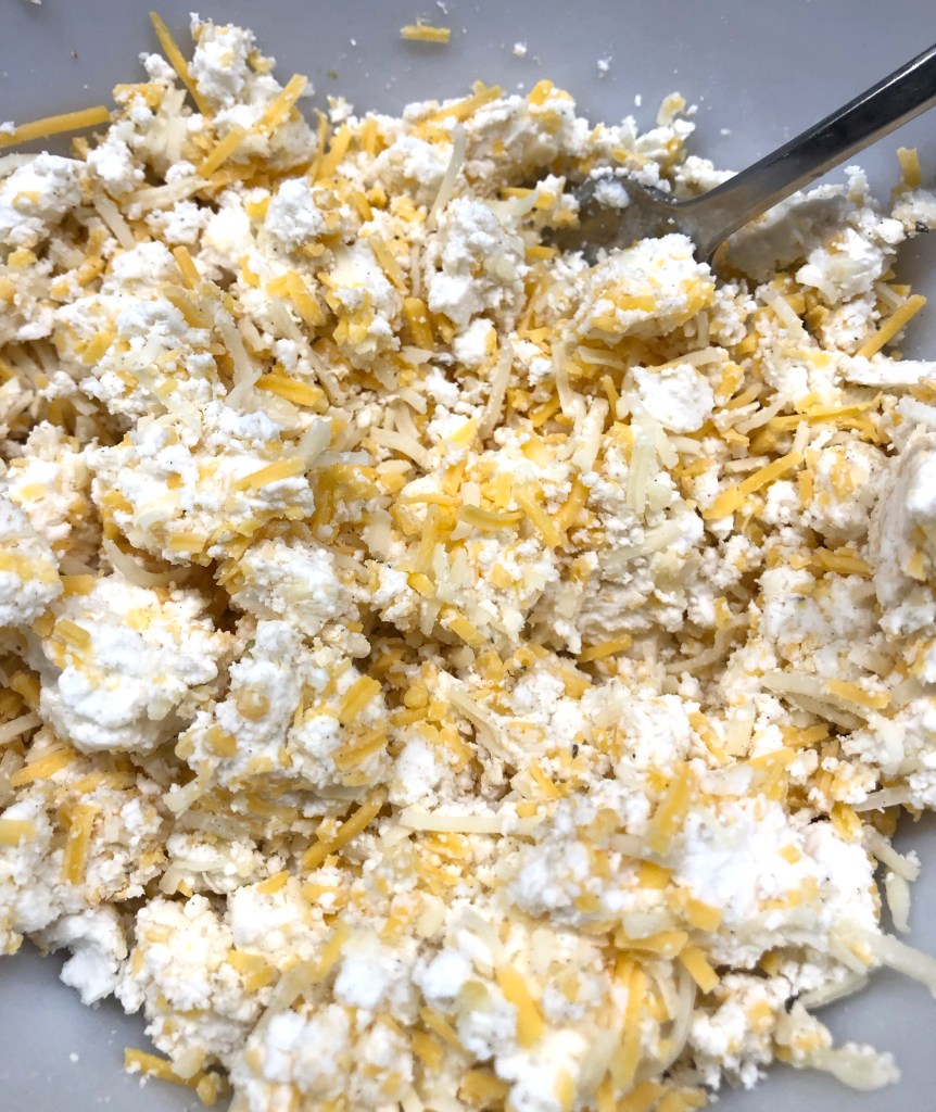 - Place ⅔ of the mixture into an oven-proof dish that is lined with parchment paper. Use your hands or a spoon to spread the mixture evenly.